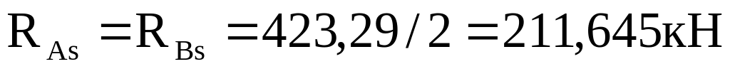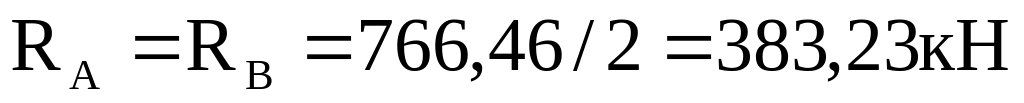 Определяем опорные реакции RA и RB, кН, по формуле / 2 /