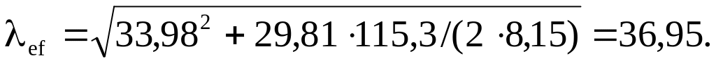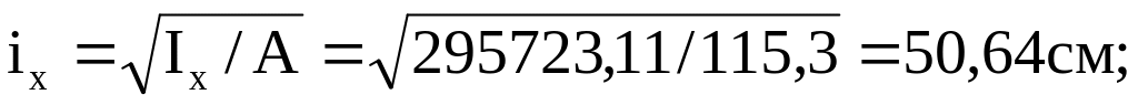 Ар = 8,15см2; imin = 1,38см; max = lp / imin = 141,42 /1,38 = 102,48; = 0,5261