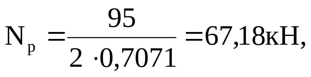 Задаемся р = 100, тогда = 0,542. Определяем требуемую площадь раскоса по формуле