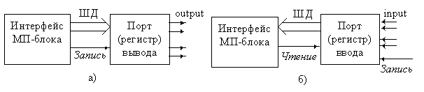 Деректерді параллельді және тізбектей тасымалдау. Ереже бойынша, порттарды басқару және оларға ену МҮ-дің(6.5-сурет) дабылдарымен қамтамасыз етіледі,сонымен қатар логикалық түрде порт - жүйенің ЕАК мен АКЕШ-да орналасқан жадының жай ғана ұяшығы.