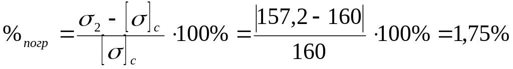 Определим процент погрешности между расчетным (действующим) напряжением в конце 2 итерации