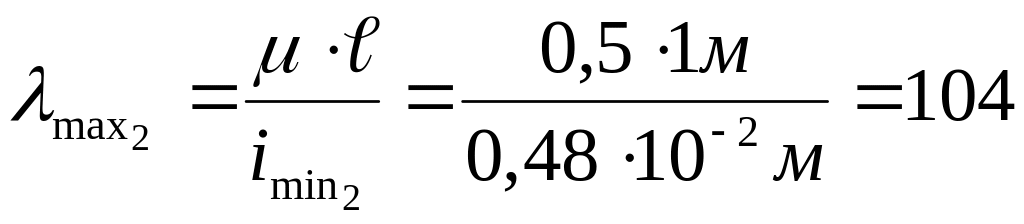 Определим величину допускаемой нагрузки. Для этого вычислим гибкость стойки. Т.к. конструкция равноустойчива, то