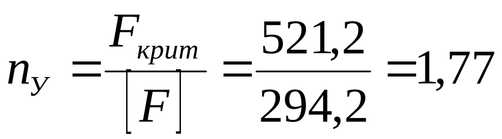 Определим величину критической силы и коэффициент запаса по устойчивости.