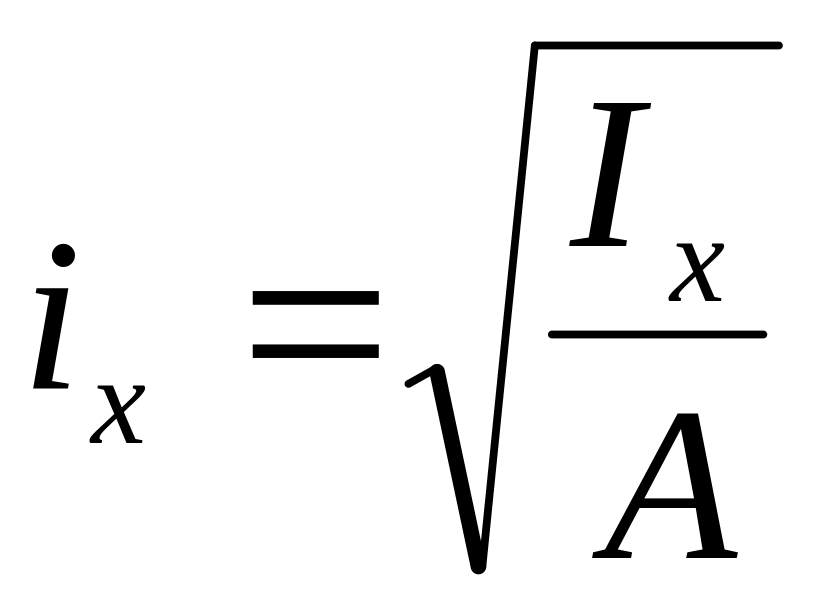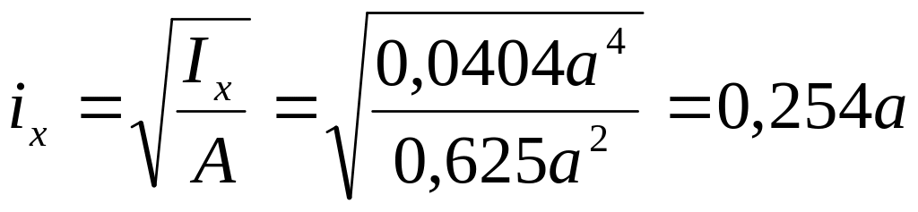 Из этих результатов видно, что ось х является осью наименьшей жесткости и поэтому выразим через «а» радиус инерции относительно оси х: