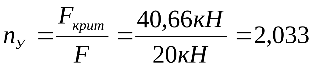 Для спроектированной стойки определить величину критической силы и коэффициент запаса устойчивости.