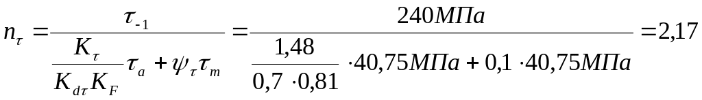Определим коэффициенты запаса усталостной прочности по нормальным и касательным напряжением, используя соответствующие формулы.
