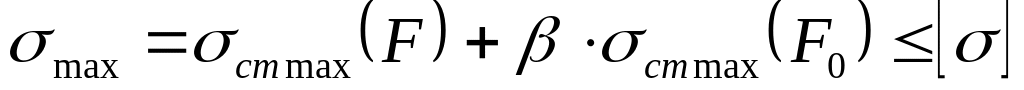 Так как вес сосредоточенной массы (двигателя) F по направлению совпадает с направлением колебательного движения, то, согласно пункту 3 приведенного выше алгоритма (стр. 75), условие прочности для нашей балки будет иметь вид (7.4):