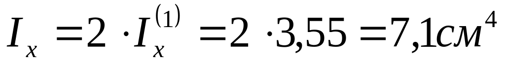По теореме о суммировании моментов инерции (см. Практикум, часть 1, стр. 27) осевой момент инерции всего сложного сечения равен: