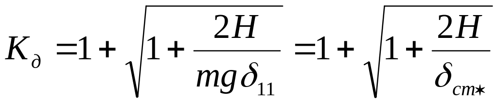 Для данного случая удара коэффициент динамичности определяется по следующей формуле: