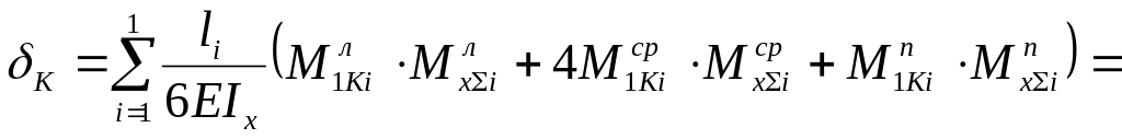Направление перемещения сечения К совпадает с выбранным направлением единичной силы на эпюре М1С. Следовательно, сечение К балки смещается вниз на 0,11мм.