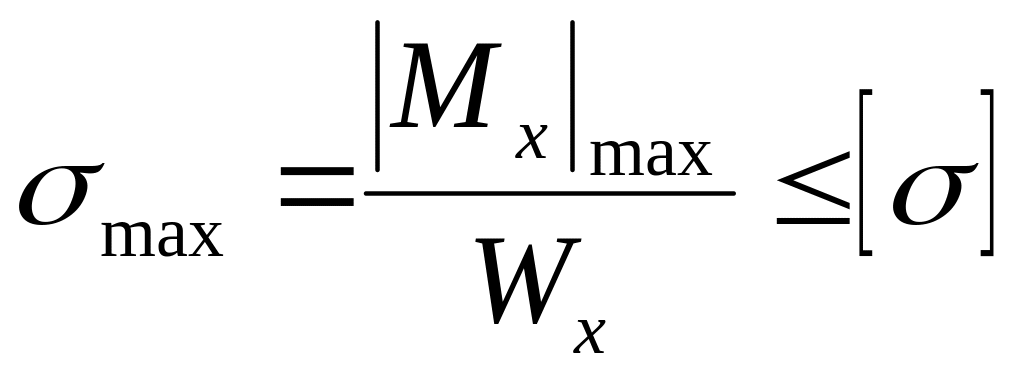 Заданная балка изготовлена из пластичного материала, следовательно, условие прочности имеет вид (см. Практикум, часть 1, стр. 35):