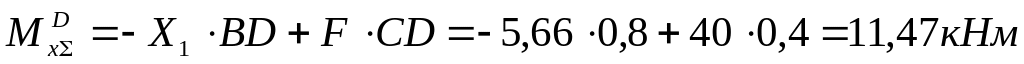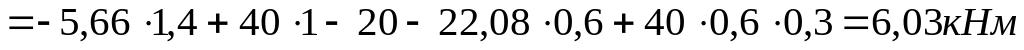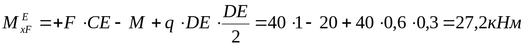 Определим значения моментов в граничных сечениях суммарной эпюры: