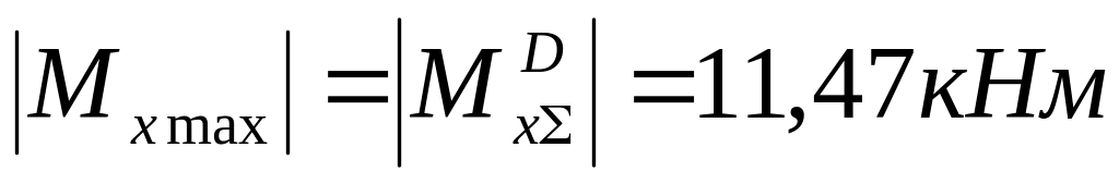 9. Подберем из условия прочности размер двутаврового сечения балки (см. Практикум, часть 1, стр. 37). Определим по суммарной эпюре положение опасного сечения. Сечение D – наиболее опасно, т.к. в этом сечении наибольший изгибающий момент:
