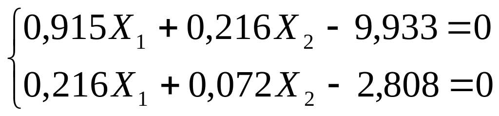 6. Подставим найденные коэффициенты в СКУМС и решим полученную систему двух линейных алгебраических уравнений относительно «лишних» неизвестных Х1 и Х2.
