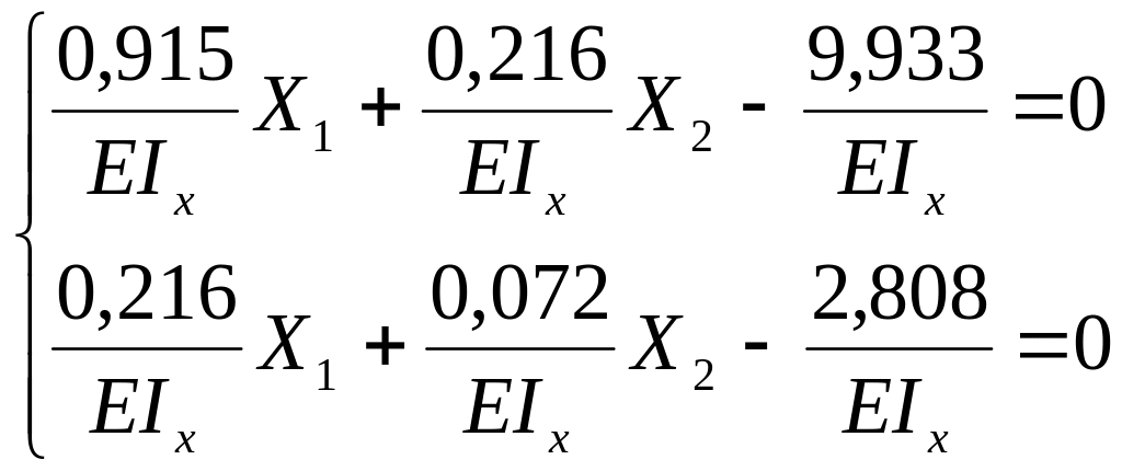 Отметим, что в каждом слагаемом обоих уравнений в знаменателе стоит величина EIx – жесткость поперечного сечения балки. Следовательно, на эту величину оба уравнения можно сократить, тогда система принимает вид: