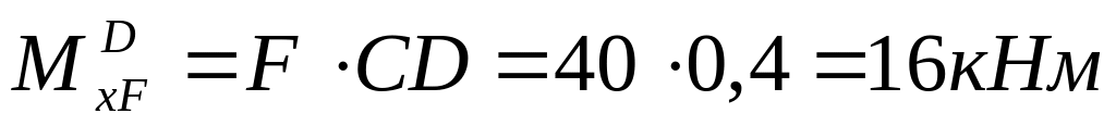 На суммарной эпюре показаны, также, значения моментов в средних сечениях участков. Они находятся аналогично методом сечений (предлагается получить эти значения самостоятельно).