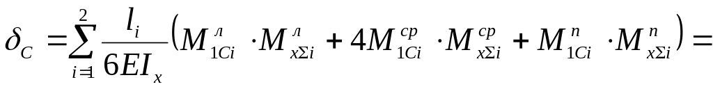 Знак «–» здесь говорит о том, что истинное перемещение сечения С противоположно выбранному направлению единичной силы на эпюре М1С. Следовательно, сечение С балки перемещается вверх на 0,036мм.