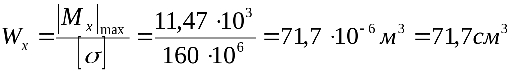 Найдем из условия прочности расчетный момент сопротивления Wx: