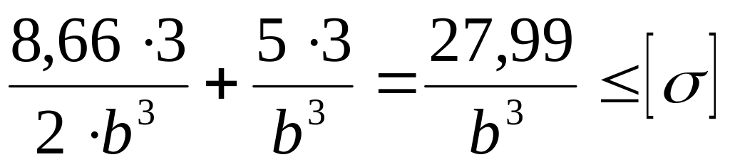 После подстановки численного значения изгибающих моментов в сечении заделки и выражений для моментов сопротивления через размер b получим: