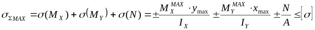 Условие прочности при косом изгибе с растяжением-сжатием имеет следующий вид: