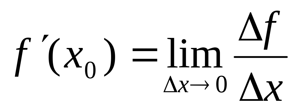 Похідною функції в точці х0 називається границя відношення приросту функції до приросту аргументу, коли приріст аргументу прямує до нуля, якщо ця границя існує: