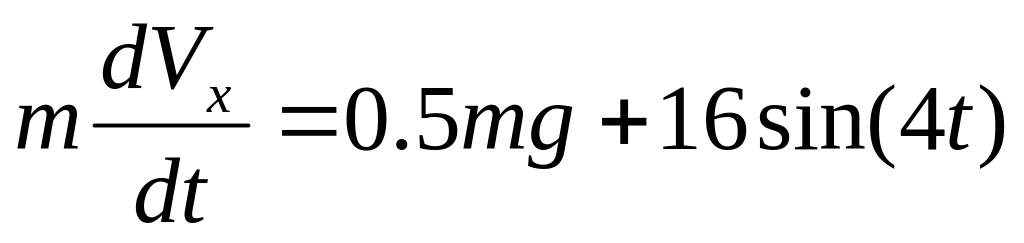 Так как Px= Р sin 300 =0,5mg, Nx=О, Fx= 16 sin (4t), то уравнение (8) примет вид