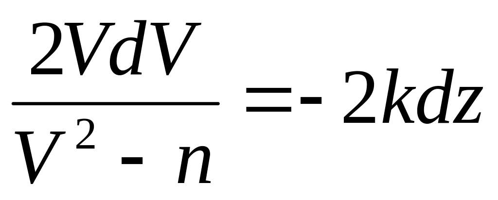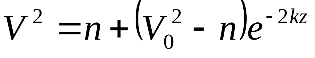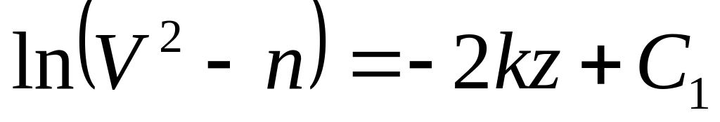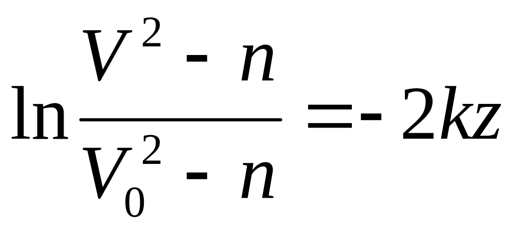 По начальным условиям при z = 0, V =V0 что дает С1 = ln (V20 — n), и из равенства (5) находим In (V2 — n) = — 2kz + ln (V20 — n) или In (V2 — n)— Iп (V20— n) = — 2kz. Отсюда