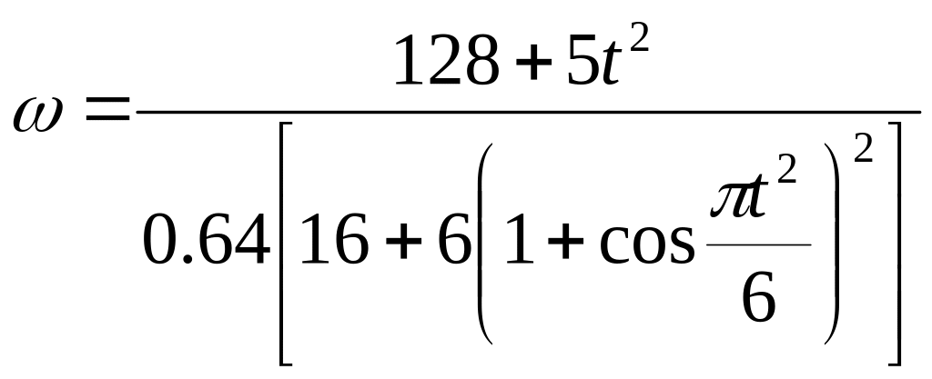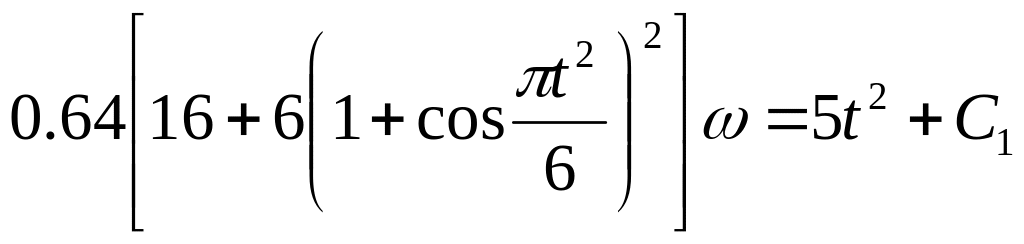 Постоянную интегрирования определим по начальным условиям: при t = 0 ω = ω0 = 5 с-1 ; получим С1 = 128. При этом значении С, из уравнения (16) находим искомую зависимость ω от t.