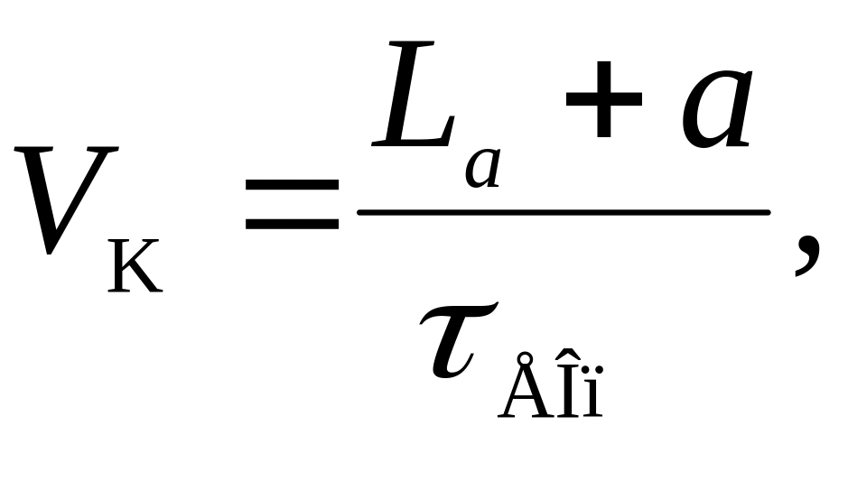 интервал между автомобилями, м, для конвейера непрерывного действия а=2–4 м, в зависимости от скорости движения конвейера Vк= 2–3 м/мин . |