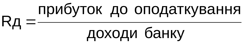 6) прибутковість (рентабельність) доходів банку визначається за формулою:
