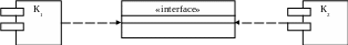 Интерфейсті жүзеге асыратын К2 компаненті оған жүзеге асу қатынасымен қосылады. Интерфейс арқылы басқа компанентке қатынау қызметін алатын К1 компаненті, бұрынғыдай интерфейске тәуелділік қатынасымен қосылады.