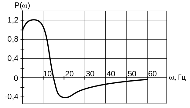 Для построения графика вещественной характеристики необходимо в формулу (10.6) подставлять значения частоты в диапазоне от нуля до бесконечности (последнее значение частоты должно соответствовать значению P() равному приблизительно 1 … 3 процента ее максимальной ординаты).