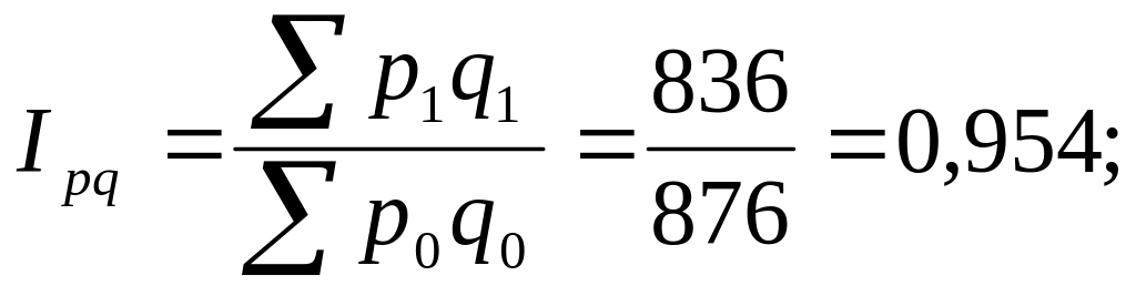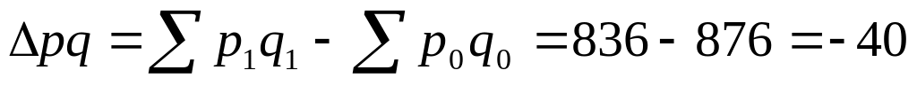 Это значит, что цены в отчетном периоде на товары базисного периода в среднем снизились на 1,7% и условное снижение объема товарооборота в связи со снижением цен на товары базисного периода составило
