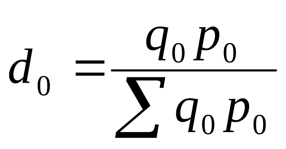В таком виде индекс физического объема продукции выступает как средняя арифметическая величина из индивидуальных индексов, взвешенных по стоимости продукции базисного периода в базисных ценах.