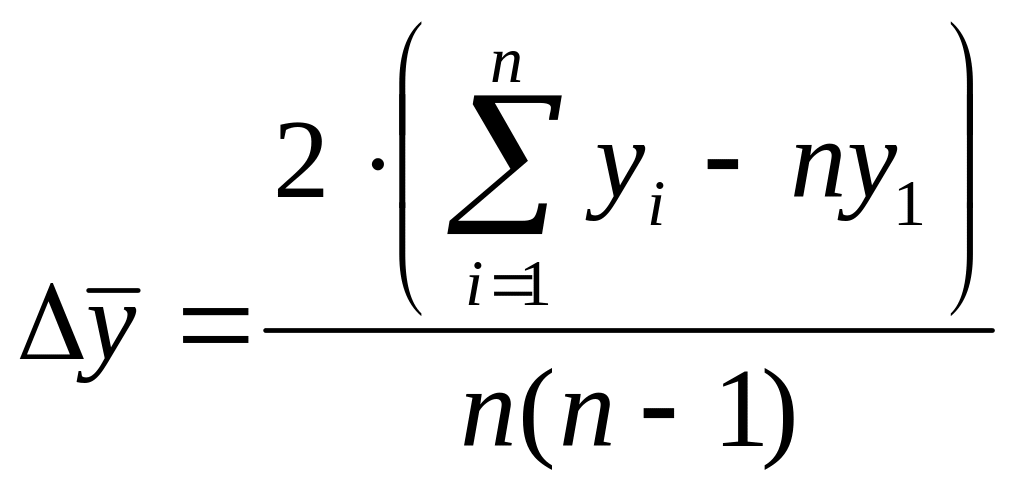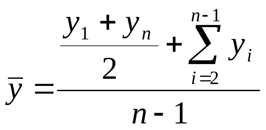 Средний уровень моментного равноотстоящего ряда динамики находится по формуле