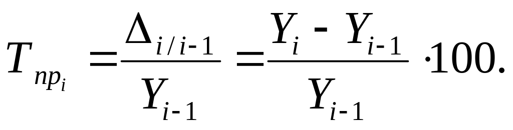 Наряду с темпом роста существует показатель темпа прироста, характеризующий относительную скорость изменения уровня ряда в единицу времени. Физически темп прироста показывает, на какую долю (или процент) уровень данного периода или момента времени больше (или меньше) базисного уровня. Он представляет собой отношение абсолютного прироста к уровню ряда, принятого за базу