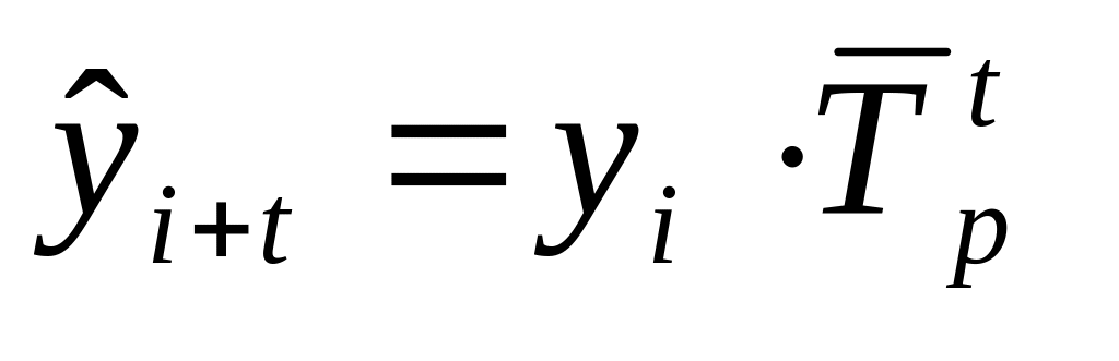 Прогнозирование по среднему темпу роста осуществляется в случае, когда установлено, что общая тенденция ряда характеризуется показательной (экспоненциальной) кривой. Для нахождения тенденции необходимо определить средний коэффициент роста, возведенный в степень, соответствующую периоду экстраполяции