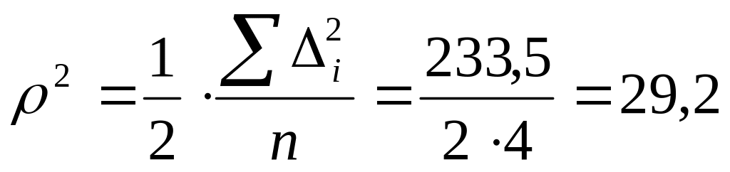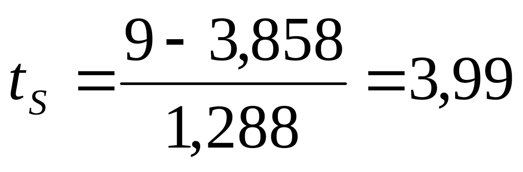 По формуле (22) определяем S=9, d=-7. По таблицам [7] при n=10, =3,858, 1 = 1,288, 2 = 1,964.