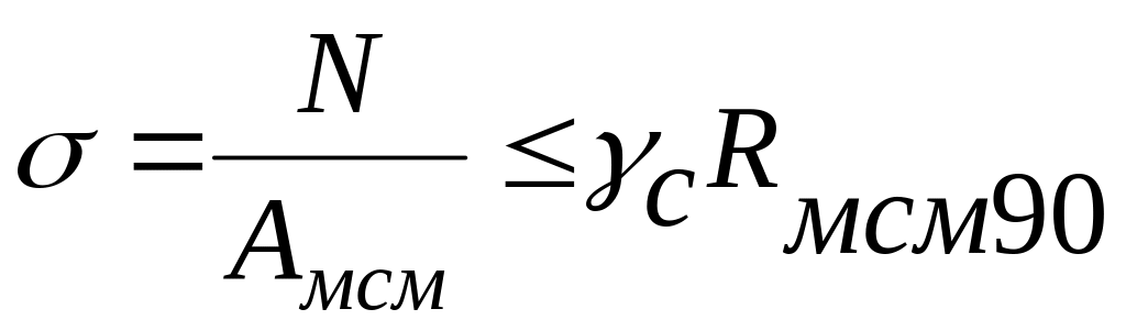 где N - расчетное усилие (численно равное опорной реакции RI(2); Амсм - площадь местного, то есть на части длины элемента, смятия опорных брусьев (суммарная площадь двух опорных листов под концом пролетного строения); с - коэффициент условий работы (принимается равным 1,0); Rмсм90 - расчетное сопротивление древесины местному смятию поперек волокон ( см. приложение 7) .