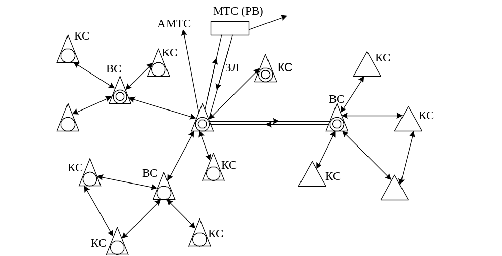 Для зменшення витрат на лінійні споруди застосовується двоступінчата побудова мережі (рис.7) : віддалені від райцентра КС вмикаються у вузлові станції (ВС), що здійснюють безпосередній зв’язок з ЦС. Однак, двоступінчата схема застосовується тільки за умови техніко-економічної доцільності вузлоутворення.