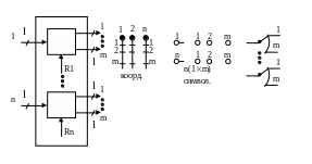 Число входів та виходів приладу вказується в круглих дужках, де перша цифра – число входів n, а друга – число виходів m.