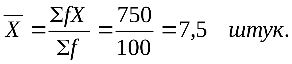 Итак, все рабочие произвели 750 штук изделий за смену, а каждый в среднем произвел по 7,5 штук.