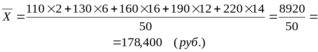 Дальнейший расчет производится обычным методом определения средней арифметической взвешенной: