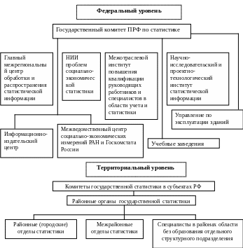Координация статистической деятельности в отраслях России осуществляется Государственным комитетом Российской Федерации (Госкомстатом). Эта главенствующая статистическая организация России возглавляется председателем, который одновременно является председателем Коллегии Госкомстата. Коллегия рассматривает вопросы по выполнению Госкомстатом возложенных на него задач. В составе Госкомстата работает Научно-методический Совет, экспертные советы, временные коллегии. Эти структурные подразделения разрабатывают необходимую статистическую документацию для соответствующих статистических служб на местах, организовывают подготовку документов и отчетности для осуществления переписи населения, разрабатывают методы статистического анализа. Госкомстат руководит работой территориальных органов государственной статистики.