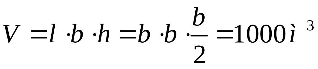 Определить размеры открытого прямоугольного бака емкостью 1000м3 при условии min поверхности дна и стенок. Объем бака V=lbh.
