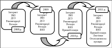 Рисунок 2.7 – Зміна видів джерел підбору персоналу, що використовувалися підприємством протягом 2008-2011 рр.