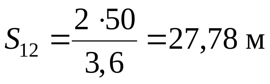 Определение параметров обгона покажем на примере скорости V2 = 50 км/ч.