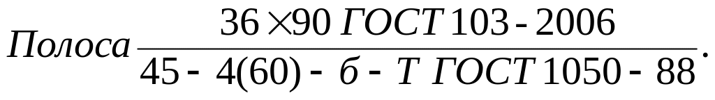 То же, полосовая, толщиной 36 мм, шириной 90 мм, марки 45, 4-й категории, диаметр заготовки 60 мм, подгруппы б, термически обработанная Т