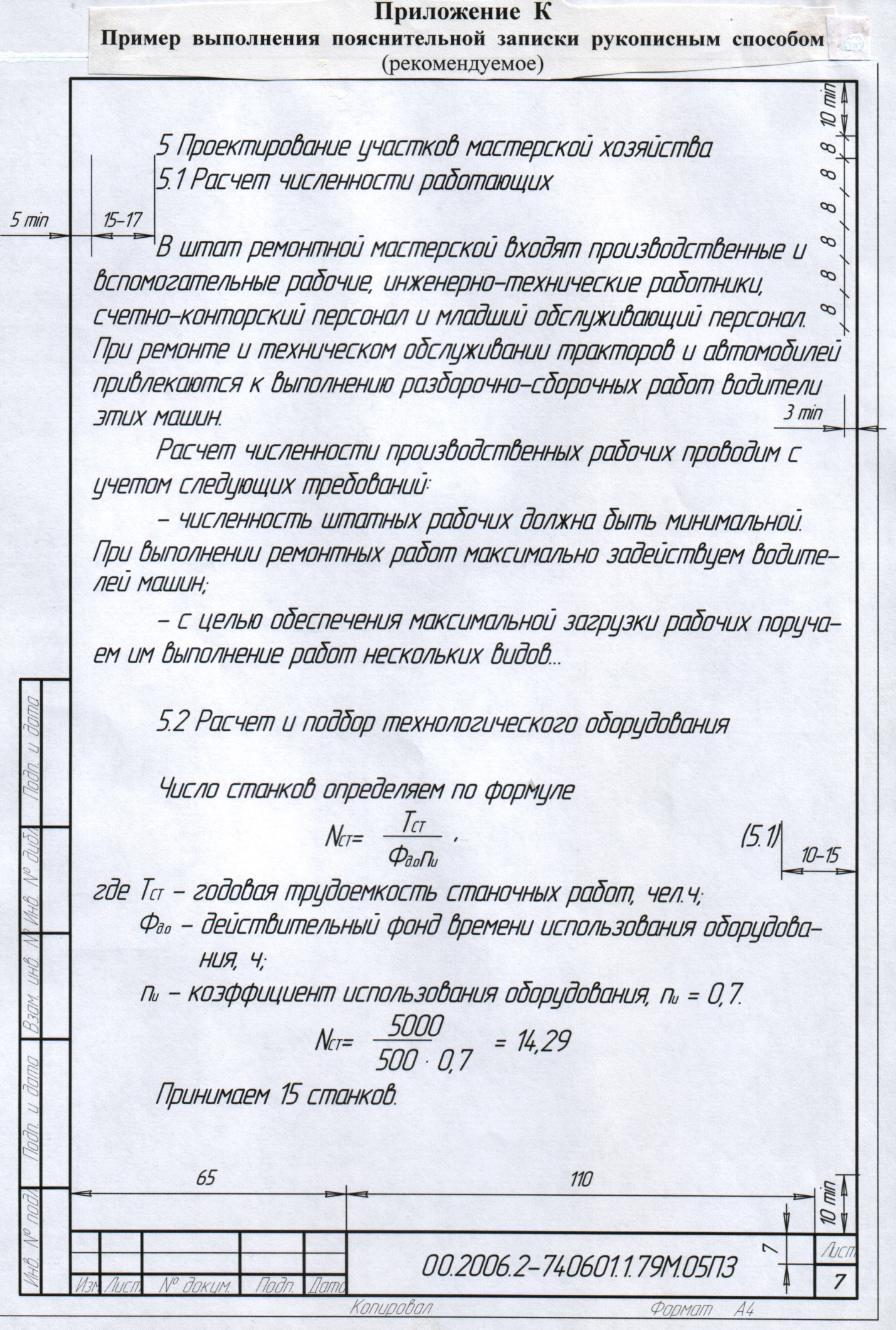 - •Пример выполнения пояснительной записки компьютером