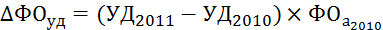 Для расчета влияния факторов на прирост фондоотдачи оборудования используется способ цепных подстановок. По формуле 15 получаем: